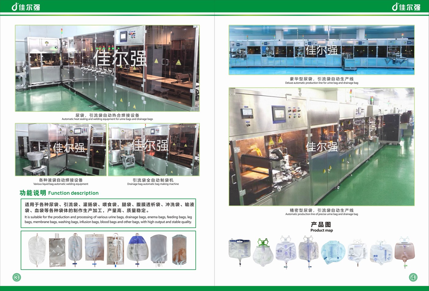 蘇州佳爾強公司主要從事醫療器械行業: 尿袋、引流袋、沖洗袋,腿袋,喂食袋、腹膜透析袋,營養袋,喂食袋,血袋,輸液袋等各種醫療液袋類自動高頻高周波焊接熱合設備, 醫療液袋氣密性檢測,測漏設備,氣檢設備。 吸痰管、導尿管、引流管,胃管,氣管插管,等各種管類的熱打孔設備,燙頭,熔頭成型設備,閉口,封口,開口等成型,設備通用型強,換型方便。 致力于對高頻高周波熱合制造深度開發, 通過不斷創新,融合國內外先進的自動化技術,使高頻制造自動化更好的發揮其優勢,更好的為客戶服務。